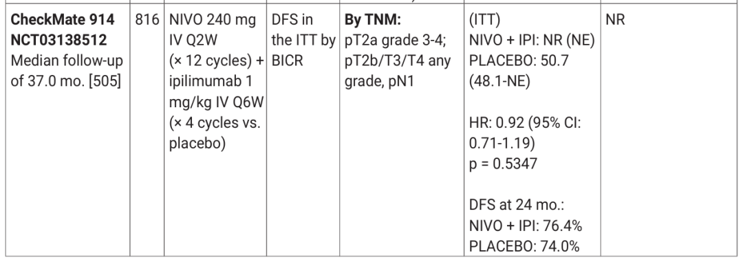 在表7.1中纳入了Checkmate 914的B组数据