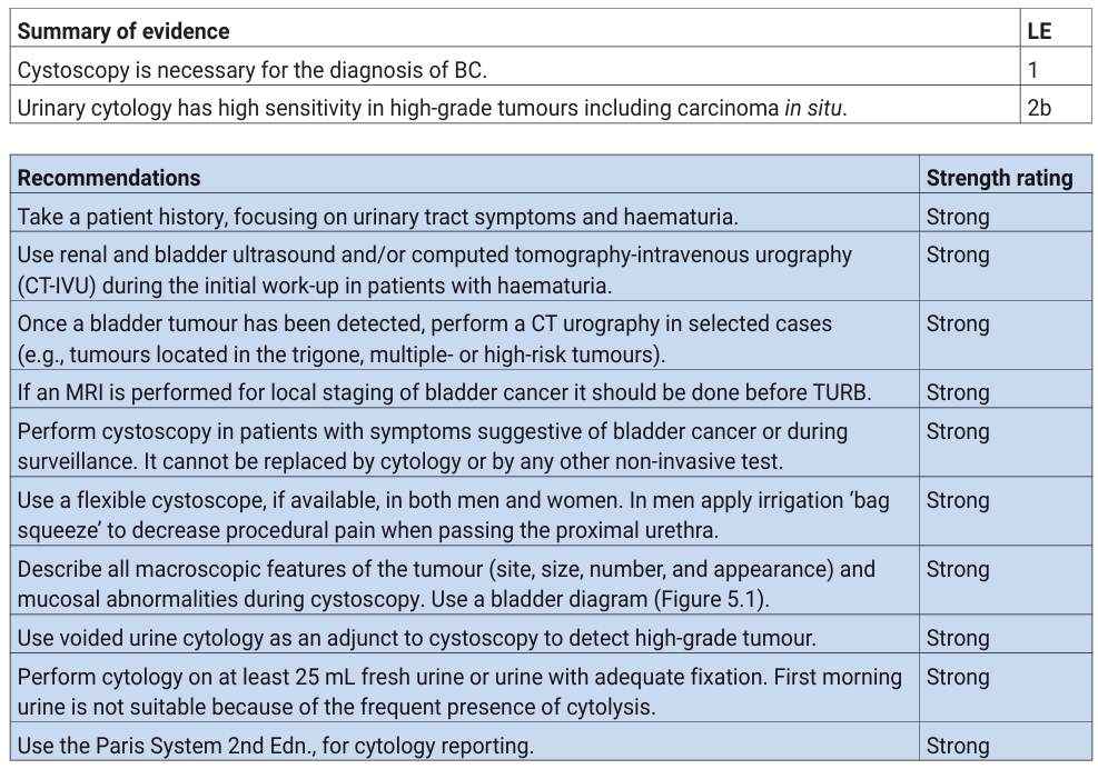 第5.9节增加了与膀胱癌局部分期MRI时机相关的新建议。此外,第5.9节还更新了关于男性和女性使用柔性膀胱镜的建议。