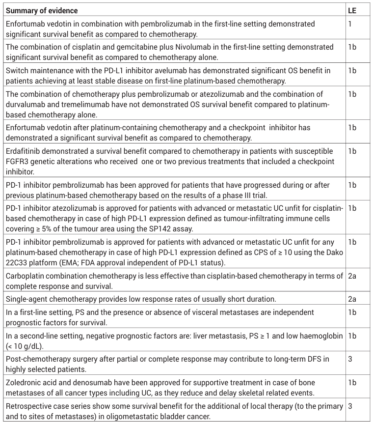 EAU指南分为非肌层浸润性膀胱癌(NIMBC)、肌层浸润性和转移性膀胱癌(MIBC和mBC)、上尿路尿路上皮癌(UTUC)等3个部分进行更新。以下为各部分更新要点。