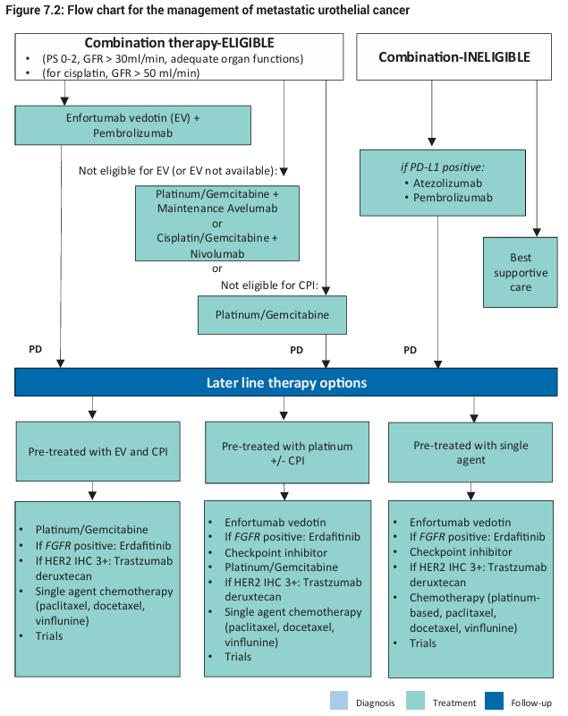 7.6.3节中对不适合或拒绝接受基于顺铂的辅助化疗的pT3/4和/或pN+疾病患者的纳武利尤单抗辅助治疗建议进行了重大调整和更新。升级了评级等级。