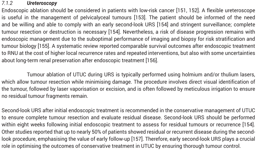 在第7.1.7节中增加了两项新建议,涉及局部低危UTUC的保肾管理。