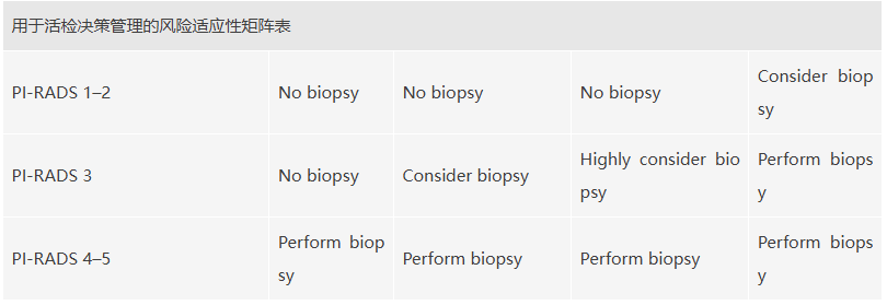 前列腺癌在T2加权成像上表现为低信号强度区域,在弥散加权成像上表现为弥散受限,在动态增强成像上表现为早期且显著的强化。然而,前列腺癌的影像学表现与某些前列腺良性疾病存在相当大的重叠。前列腺影像报告和数据系统 (PI-RADS) 对影像学表现进行标准化解读,并将疑似前列腺癌的男性患者按具有临床意义前列腺癌(csPCa)的风险等级分为 1至 5 级。