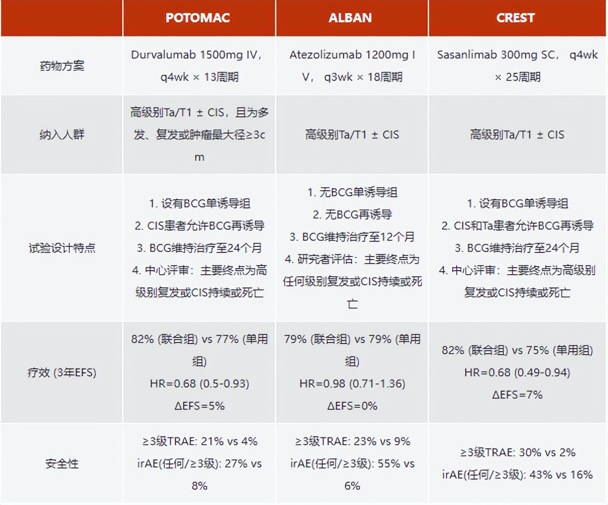 表2. 2025年三项ICI+BCG vs. BCG的III期临床研究(非头对头比较,请谨慎解读)