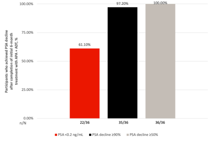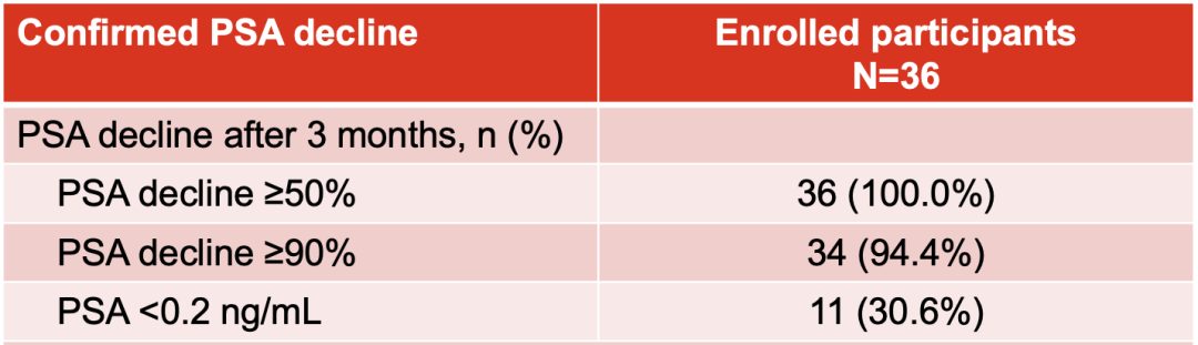 在中国亚组中,共入组36例患者,其中22例在完成6个月诱导治疗并达到PSA<0.2 ng/mL后进入主研究阶段。数据显示,中国患者展现出极为迅速且深度的PSA应答: