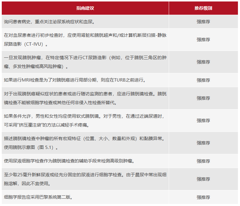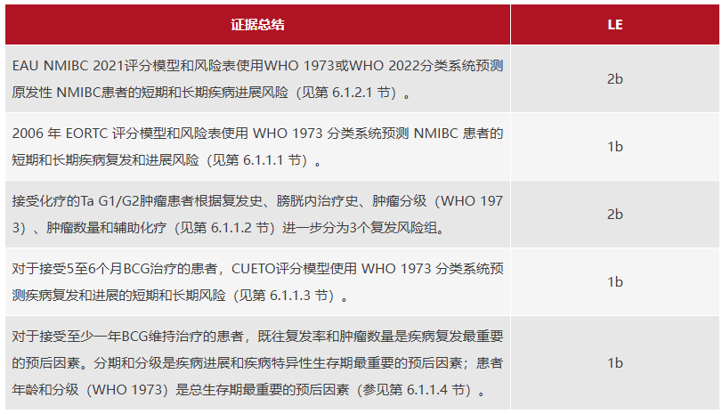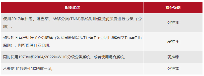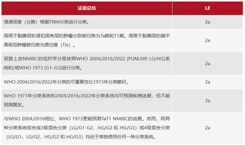 更新第4.10节中的证据级别和建议:膀胱癌分类的证据和建议概述。