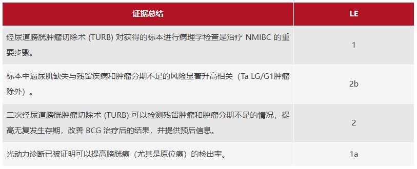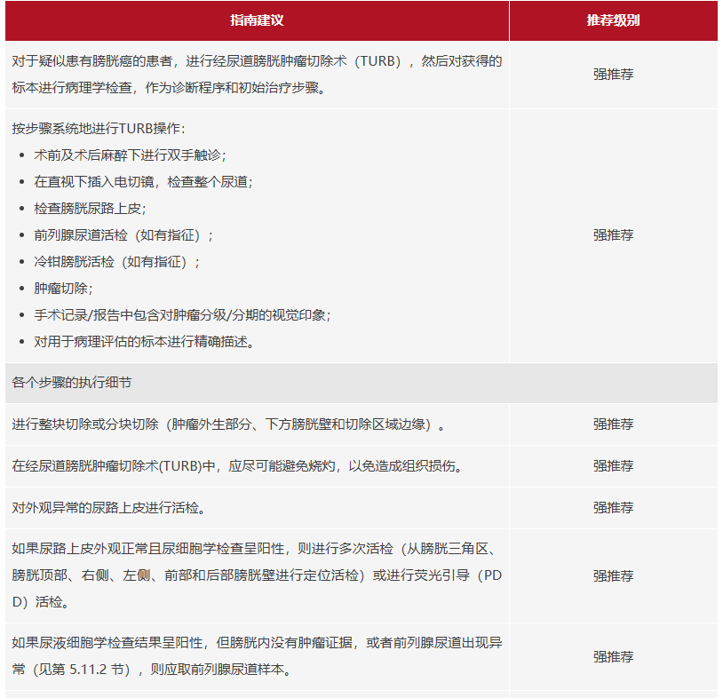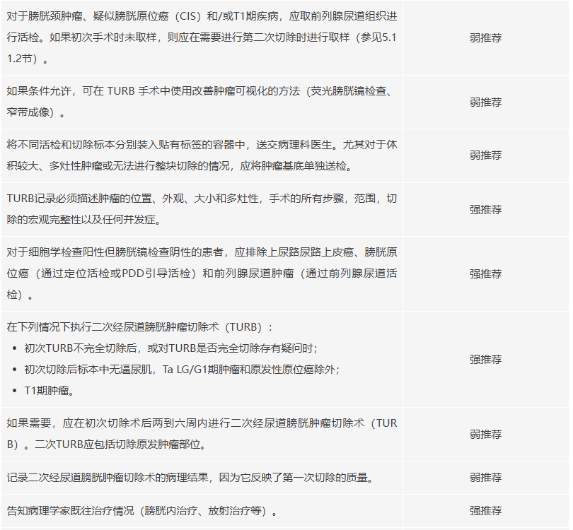 删除并调整第5.15节中的建议:经尿道膀胱肿瘤切除术(TURB)、活检和病理报告的证据和建议概述。
