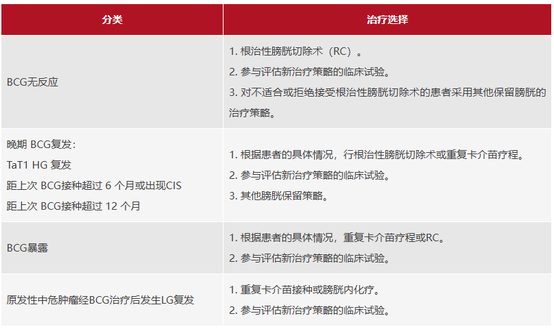 更新:不同BCG治疗失败类别的治疗方案。