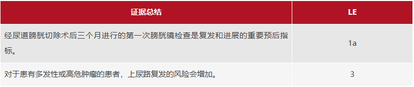 删除并调整第8.2节中的建议。第8.2节:NMIBC经尿道膀胱肿瘤切除术后患者随访的证据和建议总结。