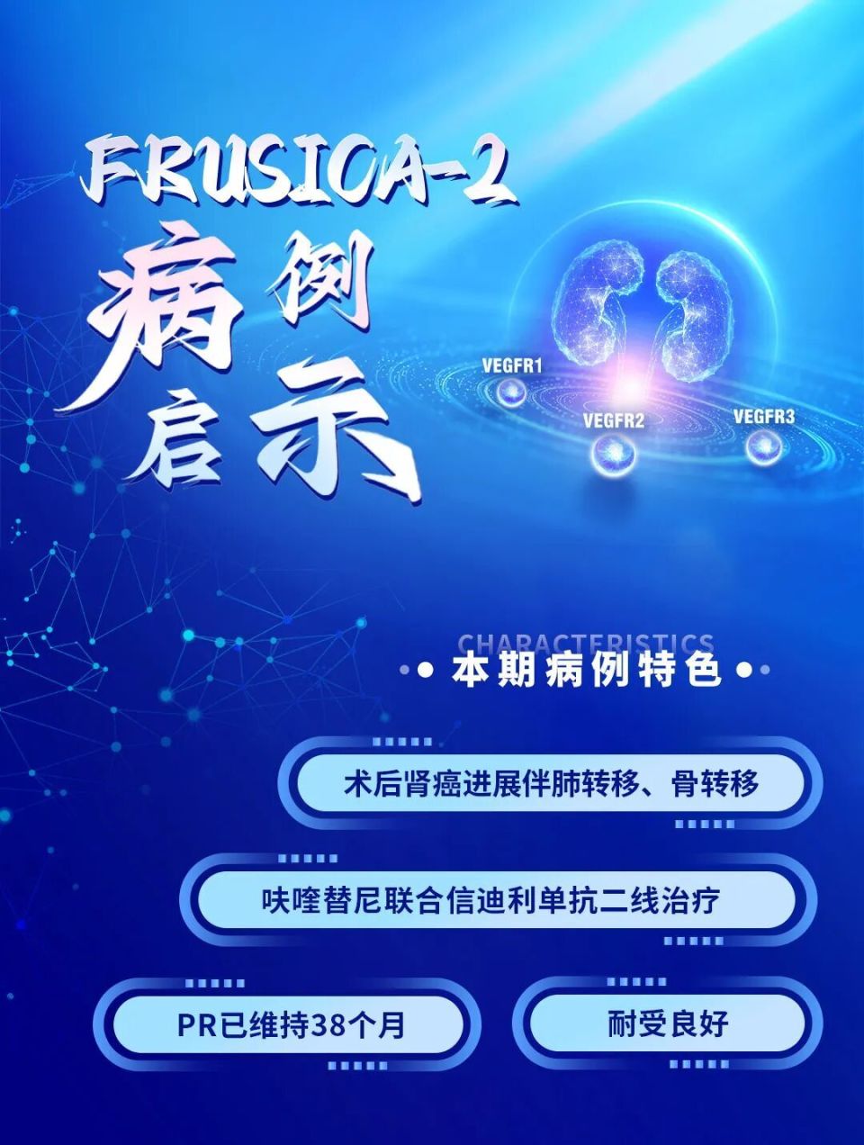 本例患者是RCC肺转移经索拉非尼一线治疗后发生肺和骨转移,入组FRUSICA-2研究并接受呋喹替尼联合信迪利单抗作为二线治疗,且在接受36个周期的靶向联合免疫治疗序贯为呋喹替尼单药治疗,直至目前(截止2026年2月9日)仍维持PR,PFS达38个月。从本例个案以及FRUSICA-2研究数据报道,一定程度上提示了呋喹替尼为基础的二线治疗方案的表现,对于VEGFR-TKI经治患者,呋喹替尼联合免疫二线治疗(序贯呋喹替尼单药治疗)的循证医学证据,支持其为此类患者的二线治疗可考虑的一项方案。