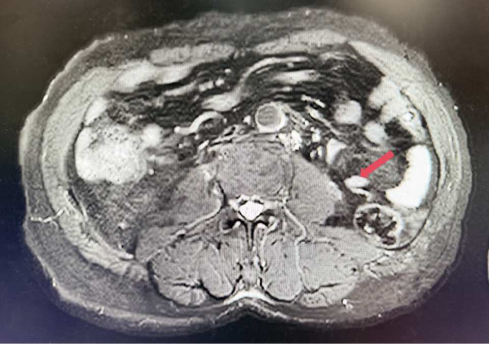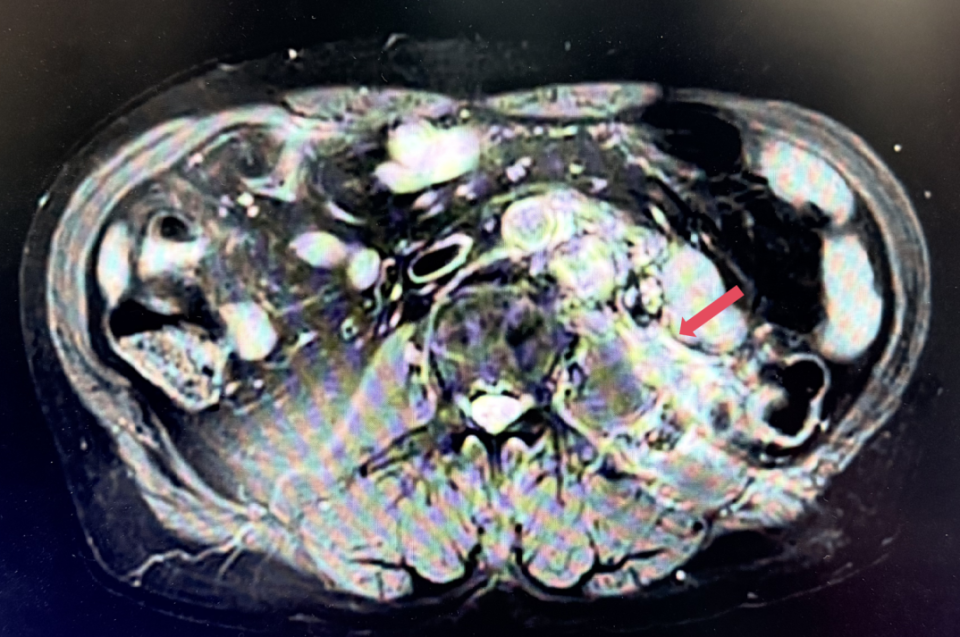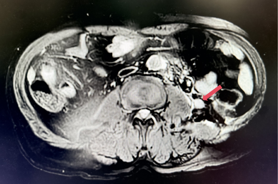 2022年11月:MR示左侧腹膜后多发结节及肿块影,较前略增大,6.1*5.5cm,另可见邻近左侧后腹膜多发DWI异常信号结节,较前新发,较大者2.4*2.1cm,考虑疾病进展(PD)。