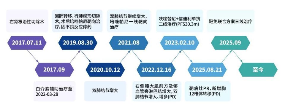 主诉:确诊右肾癌5年余,一线靶向治疗16个月后进展2月余