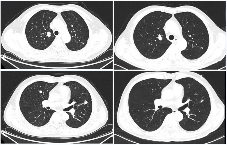 △2023年2月患者基线时CT(左)与2024年4月时CT(右)检查所见对比