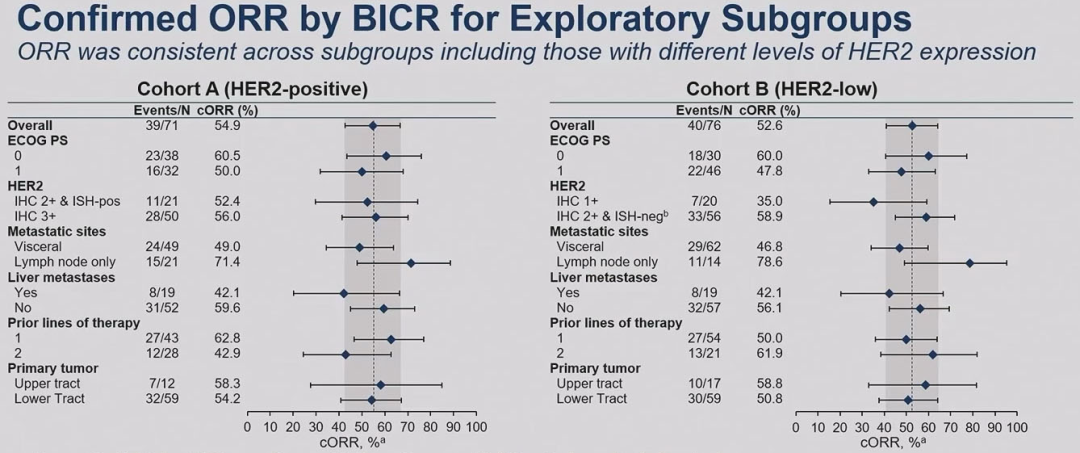 With the widespread clinical adoption of ADCs, the clinical value of patients with low HER2 expression (IHC 1+、IHC 2+/ISH-) has been redefined. Disitamab vedotin can be used in all patients with HER2-expressing urothelial carcinoma (IHC 1+, 2+, or 3+), an eligible population that covers the vast majority of patients with this disease. Clinical data show no significant difference in the efficacy of disitamab vedotin between patients with traditionally defined HER2 positivity and those with low HER2 expression, with no notable enrichment of treatment effect observed.