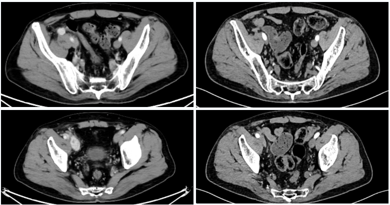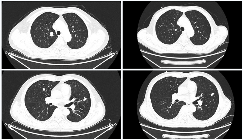 △2023年2月患者基线时CT(左)与2024年4月时CT(右)检查所见对比